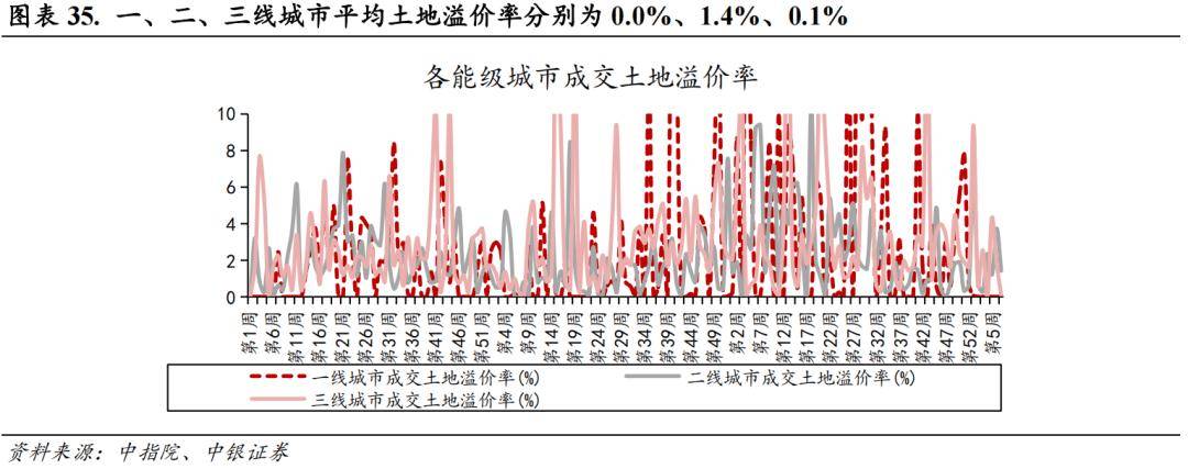 从城市能级来看,一、二、三线城市成交土地规划建筑面积分别为76.2、396.6、750.6万平方米,一、二、三线.6%、-6.1%、57.2%;一、二、三线城市成交土地总价分别为88.3、34.0、61.8亿元,一、二、三线.9%、-45.8%、69.4%;一、二、三线元/平,一、二、三线.8% 、-42.3%、7.8%;一、二、三线城市平均土地溢价率分别为0.0%、1.4%、0.1%,一线城市环比增速不变、二线个百分点、三线个百分点,一线城市同比增速不变、二线个百分点、三线个百分点。